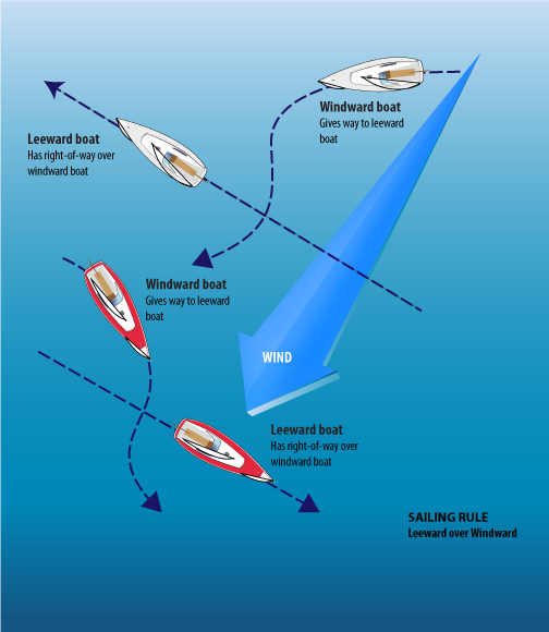 - Når to sejlbåde har vinden ind fra samme side, skal den luv båd (båden på vindsiden) vige for den læ båd (båden i læ af vinden).